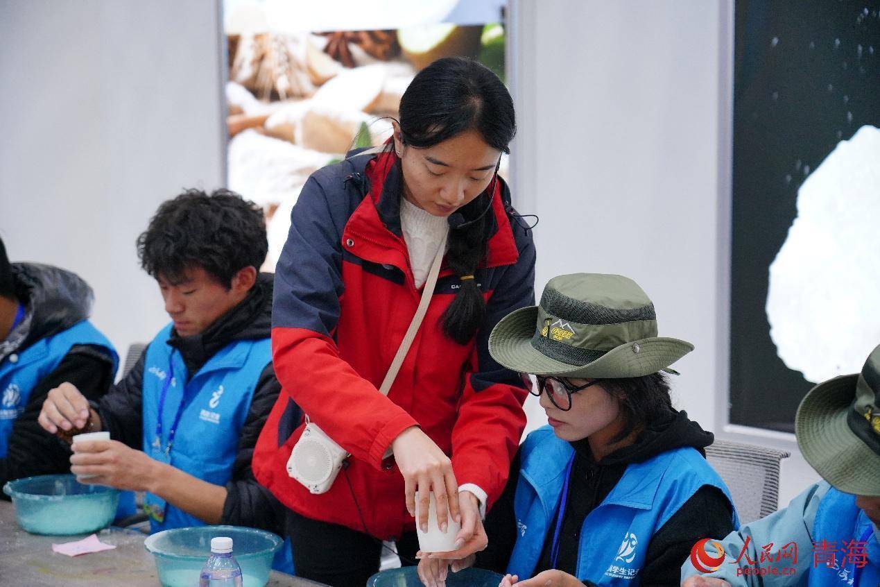 工作人员指导体验者制作盐雕。实习生 孟啟昇摄